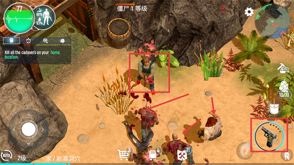 1、在“家/巖溶洞穴”區(qū)域,使用右側(cè)槍械攻擊僵尸,完成任務(wù),確保家園安全。