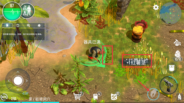2、外出收集資源時(shí),可采集“紅薯莖”等物資,注意道具欄容量,避免“器具已滿(mǎn)”的情況,合理分配資源。