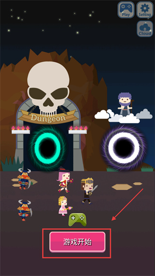1、點(diǎn)擊游戲開(kāi)始按鈕,選擇對(duì)應(yīng)傳送門(mén)開(kāi)啟地牢或僵尸世界的冒險(xiǎn)。