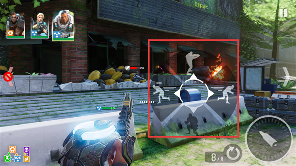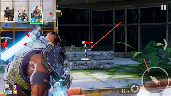 2、戰(zhàn)斗時,利用掩體躲避敵人攻擊,使用技能瞄準敵人,快速清理戰(zhàn)場。