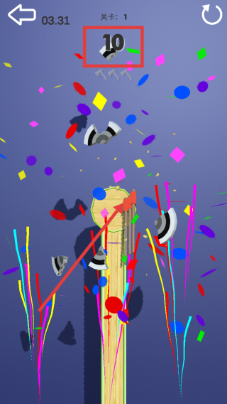 3、采用真實(shí)物理引擎模擬斧頭飛行軌跡,旋轉(zhuǎn)斧頭與靶子碰撞的效果逼真,斧頭著靶點(diǎn)完全符合物理規(guī)律,增強(qiáng)代入感。