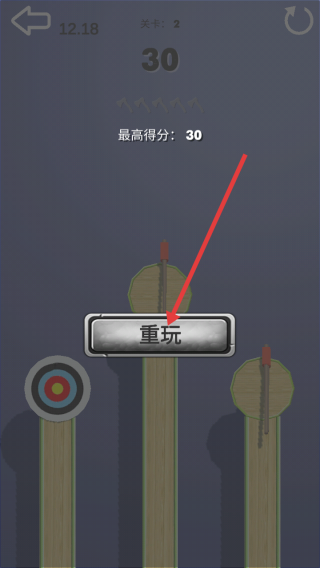 4、若想重新挑戰(zhàn)關(guān)卡,點(diǎn)擊【重玩】按鈕,可再次嘗試,爭取突破最高得分【30】分。