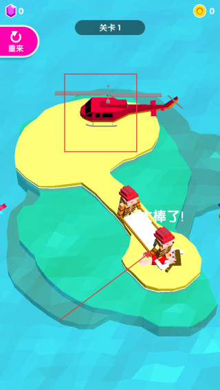 2、關(guān)卡1中,操控救援人員,將大叔送往直升機(jī)處,完成救援,獲取通關(guān)獎(jiǎng)勵(lì)。