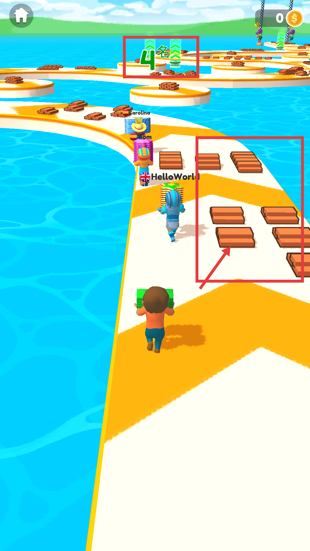 3、鼓勵玩家尋找安全完美的近路,合理收集木板搭建橋梁可縮短通關(guān)時間,輕松領(lǐng)先對手爭奪冠軍,帶來成就感與爽感。