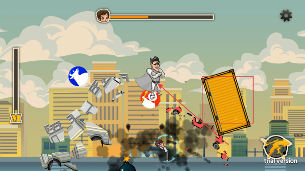 3、繼續(xù)操控超人,擊碎更多障礙物,如黃色集裝箱,擴大救援范圍,保護城市安全。