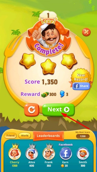 4、完成關(guān)卡后點(diǎn)擊【Next】按鈕,進(jìn)入下一關(guān)繼續(xù)挑戰(zhàn),同時(shí)可獲得獎(jiǎng)勵(lì)。