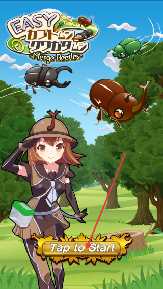 1、點擊【Tap-to-Start】開始游戲,進(jìn)入以甲蟲合并為主題的游戲世界,準(zhǔn)備開啟收集與合并甲蟲的旅程。