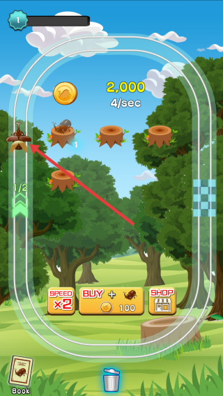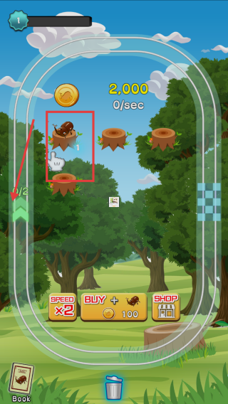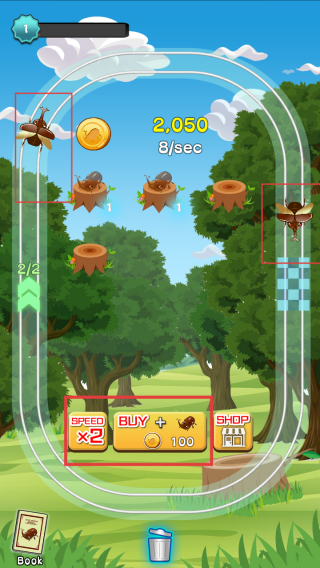 2、點擊樹樁上的甲蟲,使其在軌道上移動,同時留意金幣收益,通過點擊來積累資源。