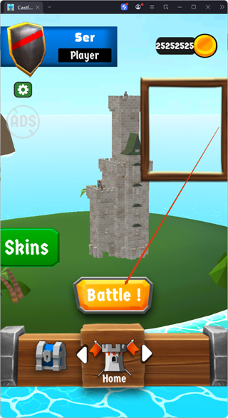 1、點(diǎn)擊【Battle!】,進(jìn)入城堡攻防戰(zhàn)的游戲環(huán)節(jié),開(kāi)啟攻城戰(zhàn)斗的冒險(xiǎn)。