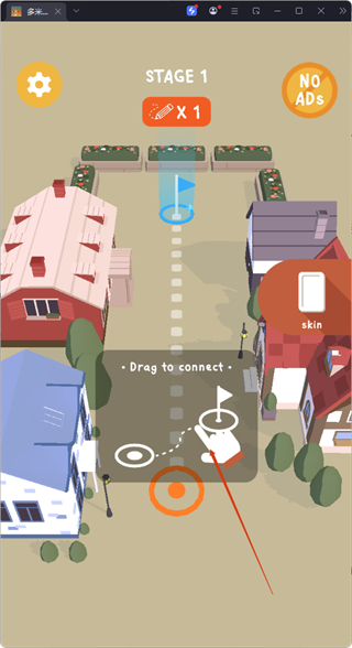 1、按照提示【Drag-to-connect】,拖動屏幕連接路徑,開始游戲的第一關(guān),嘗試讓物體到達目標點。