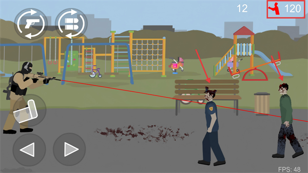 1、進入游戲后瞄準僵尸射擊,關注右上角僵尸總數,盡全力清理僵尸哦。