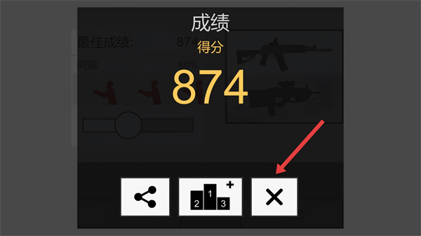 4、結算后點擊【叉號】繼續(xù)挑戰(zhàn),開啟新的僵尸射擊關卡,爭取突破更高得分啦。