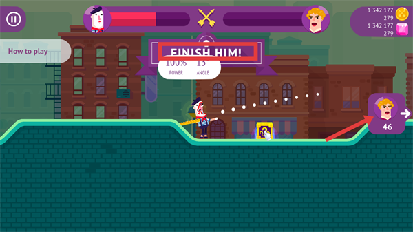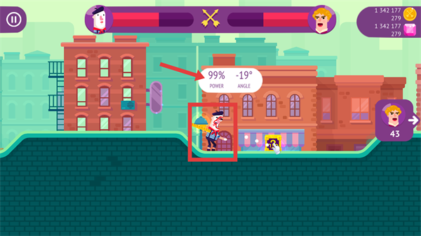 2、進(jìn)入對戰(zhàn),根據(jù)對手位置,調(diào)整力量和角度,瞄準(zhǔn)后釋放射擊,精準(zhǔn)把控拋物線軌跡呀。