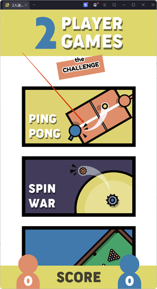 1、選擇【PING-PONG】游戲,進入雙人乒乓球?qū)?zhàn)模式,開始競技挑戰(zhàn)。