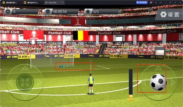 2、操控足球搖桿調(diào)整弧度和方向,按住蓄力,準(zhǔn)備踢出任意球,嘗試攻破對方球門。