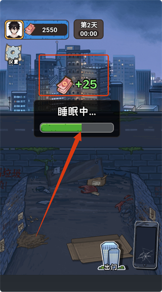 3、睡眠時(shí)可獲得【+25】金錢收益,利用睡眠時(shí)間積累財(cái)富,為后續(xù)發(fā)展提供資金。