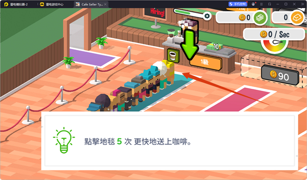 2、點(diǎn)擊地毯5次,加快咖啡送達(dá)速度,提升客人滿意度,增加咖啡店收益。