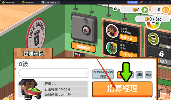 3、招募經(jīng)理,提升經(jīng)理等級,優(yōu)化咖啡店運(yùn)營效率,增加賺錢速度和收益。