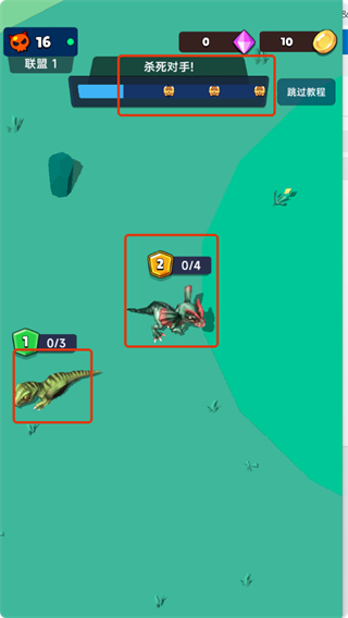 3、根據(jù)任務(wù)【殺死對(duì)手!】,控制恐龍與對(duì)手戰(zhàn)斗,注意雙方等級(jí),合理規(guī)劃戰(zhàn)斗策略,完成任務(wù)目標(biāo)。