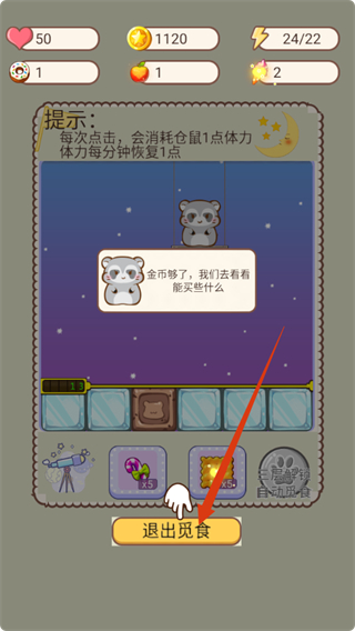 2、覓食時注意每次點擊消耗倉鼠1點體力,體力每分鐘恢復(fù)1點,合理規(guī)劃覓食操作,積累金幣和資源。