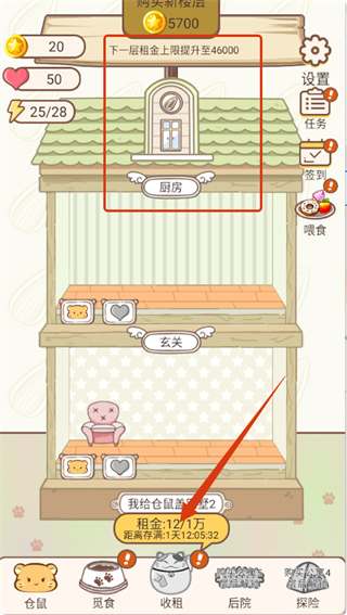 4、關(guān)注租金積累,按時收租,積累資金用于購買新樓層,提升租金上限,逐步打造更高級的倉鼠別墅。