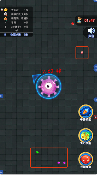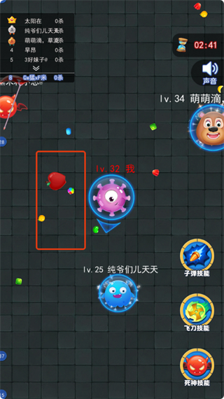 2、進入游戲后,操控角色移動,收集場景中的道具,注意躲避高等級玩家,同時觀察其他玩家的擊殺數(shù)。