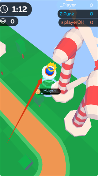 2、游戲中操控角色移動,爭奪區(qū)域,注意上方的時間和分數(shù)統(tǒng)計,與其他玩家競爭。
