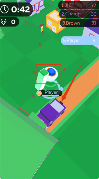 3、在場景中躲避車輛等障礙物,持續(xù)擴大自身區(qū)域,提升分數(shù),關注排名變化。