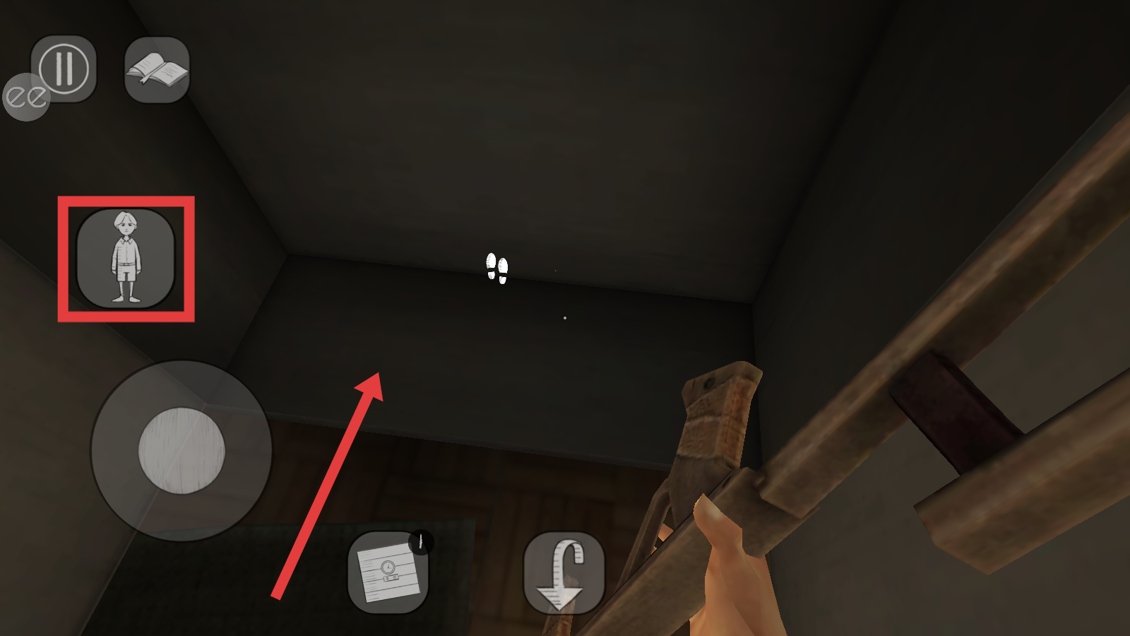 1、當(dāng)柜子顯示白色腳印時,點(diǎn)擊左側(cè)角色圖標(biāo)切換姿勢,可以躲進(jìn)衣柜暫避追捕。