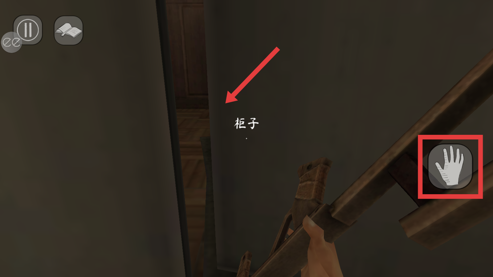 2、進(jìn)入【柜子】中,等待修女離開后,點(diǎn)擊右側(cè)互動手圖標(biāo),可以從柜子中出去,接著探索道具。
