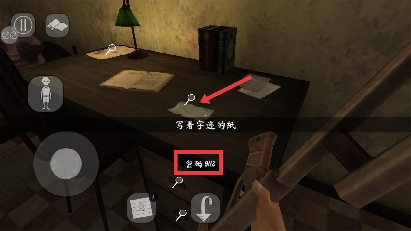 3、仔細(xì)調(diào)查【寫著字跡的紙】,獲取密碼【9118】,這可是解開后續(xù)謎題的關(guān)鍵,可別忽略了哦。