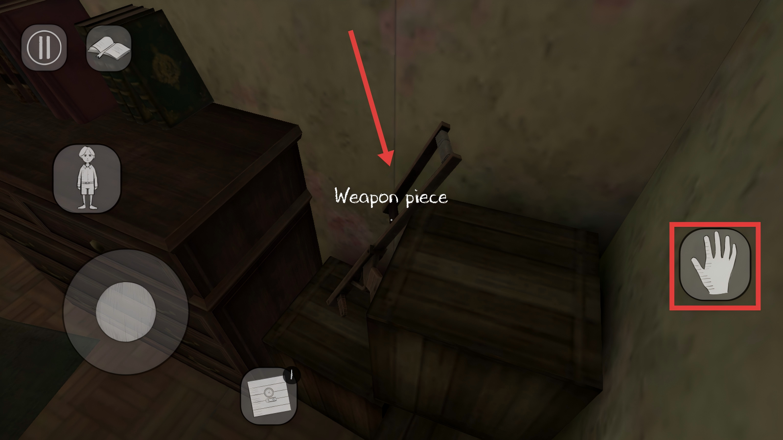 2、找到【W(wǎng)eapon-piece】后,點擊右側(cè)手形按鍵拾取武器部件,逐步收集可組裝武器助力逃脫。