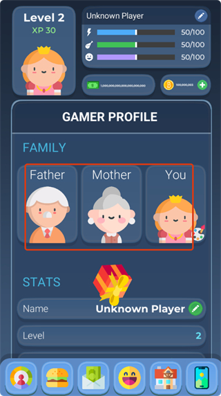 1、查看【FAMILY】板塊的家庭成員信息,了解游戲角色的背景,為后續(xù)發(fā)展做準(zhǔn)備。