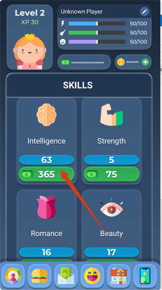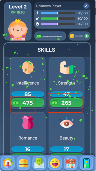 3、同時升級多個技能,如【Intelligence】和【Strength】,獲取更多貨幣獎勵,加速角色成長。