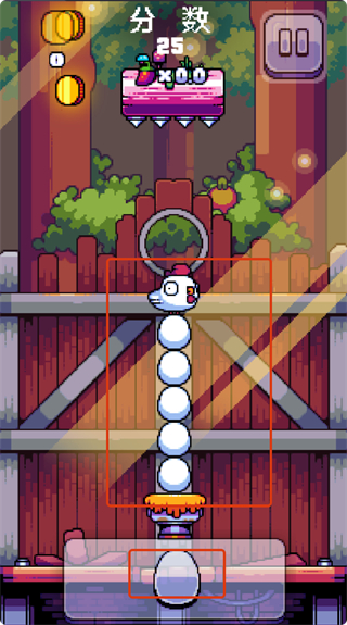 3、持續(xù)生成蛋并堆疊,讓小雞不斷向上,收集途中的金幣和道具,分?jǐn)?shù)會(huì)隨收集進(jìn)度增加,注意躲避障礙物。