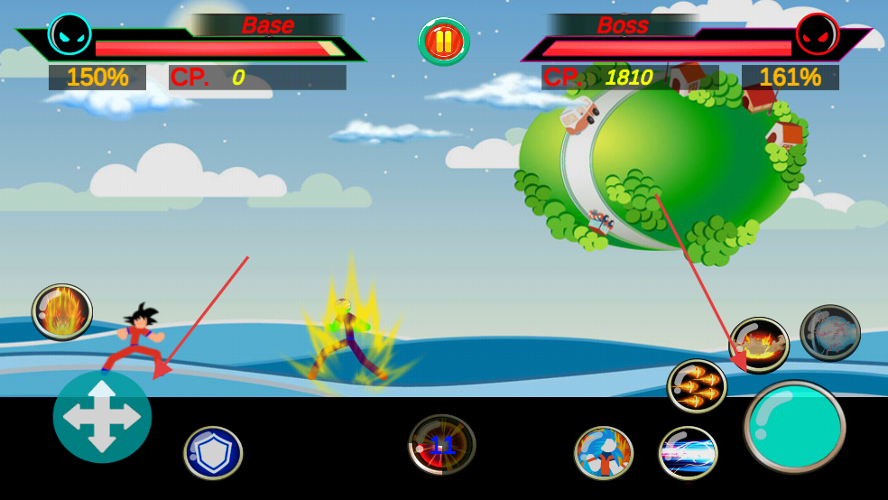 2、戰(zhàn)斗中通過左側(cè)十字按鈕控制角色移動(dòng),右側(cè)技能按鈕釋放攻擊技能對(duì)抗Boss。