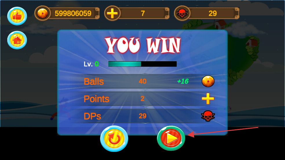 4、獲勝后點(diǎn)擊播放按鈕,可繼續(xù)挑戰(zhàn)后續(xù)關(guān)卡,不斷提升戰(zhàn)斗能力。