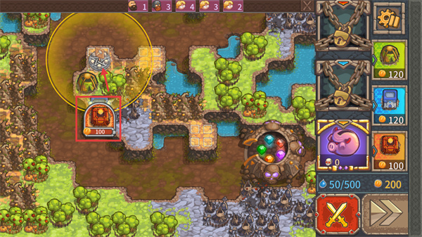 1、利用【金幣-100】購買資源建筑,獲取資源以建設(shè)防御設(shè)施,為塔防布局奠定資源基礎(chǔ)。