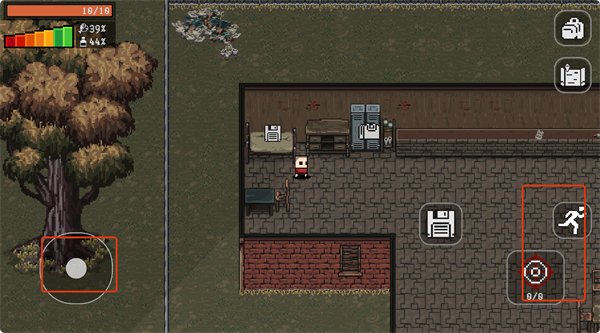 2、游戲中,利用左側(cè)虛擬搖桿移動(dòng)角色,右側(cè)功能按鈕執(zhí)行動(dòng)作,關(guān)注上方狀態(tài)條,保持角色狀態(tài)良好。