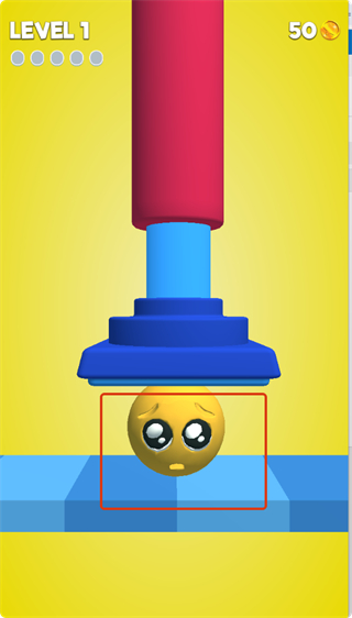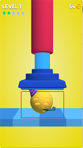 2、游戲中,觀察壓具的下落,控制表情球的位置,避免被壓具擠壓,開始熟悉游戲操作。