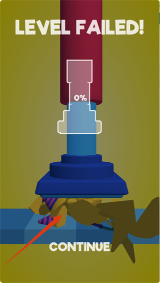 4、若游戲失敗,出現(xiàn)【LEVEL-FAILED!】提示時(shí),點(diǎn)擊【CONTINUE】重新開始,爭(zhēng)取在后續(xù)關(guān)卡中獲得成功。