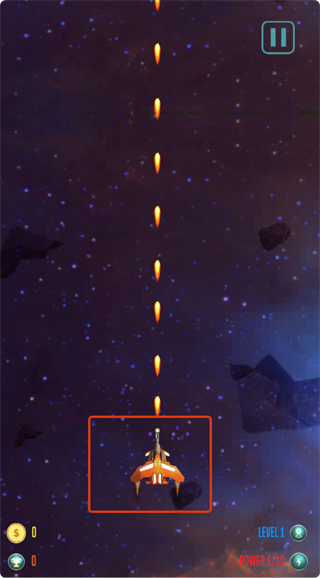 2、游戲中,操控飛船發(fā)射子彈,躲避隕石,開始熟悉射擊和躲避的操作機(jī)制。