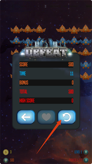 4、若游戲失敗,點(diǎn)擊重新開始按鈕,總結(jié)經(jīng)驗(yàn),提升射擊技巧,爭(zhēng)取在后續(xù)關(guān)卡中獲得更高分?jǐn)?shù)。