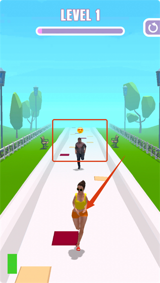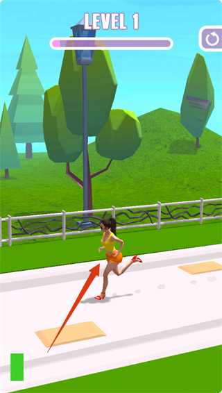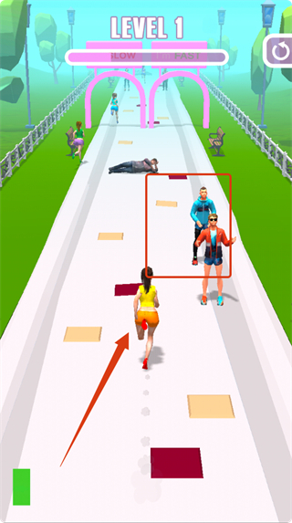 3、奔跑中,避開其他行人,選擇合適的路徑前進,關注上方進度條,確保順利推進關卡進度。