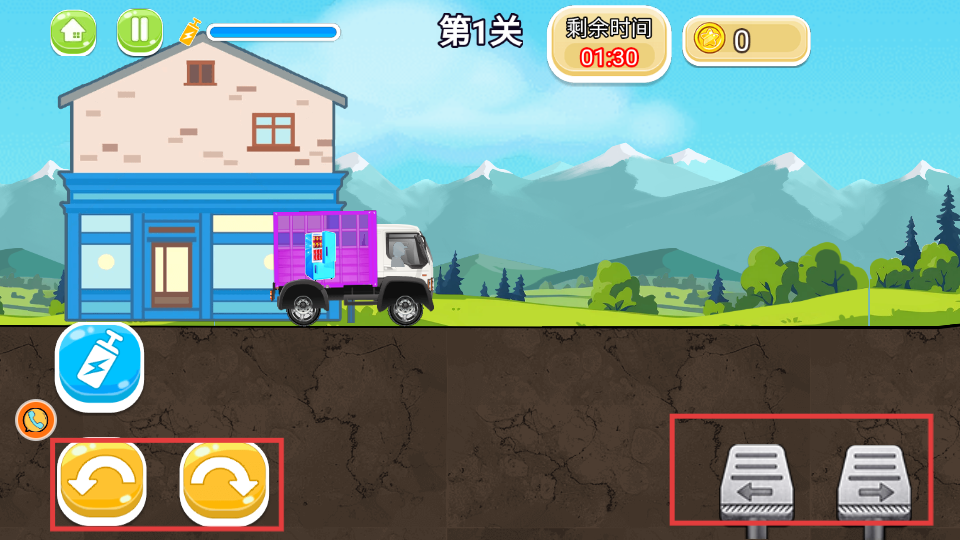 2、利用操作按鈕控制卡車行駛,注意路況,在規(guī)定時(shí)間內(nèi)完成運(yùn)輸任務(wù)。