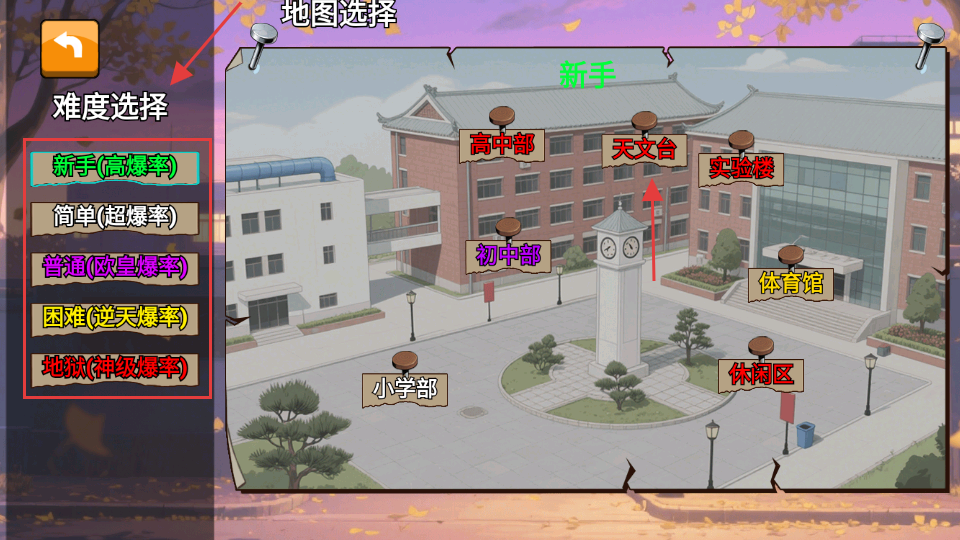 2、難度選【新手-高爆率】起步,地圖選【天文臺】等區(qū)域,規(guī)劃路線便于搜掠與撤離。