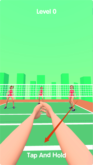 1、游戲開始時,注意界面提示【Tap-And-Hold】,掌握點擊并按住的操作方式,為發(fā)球做準備。