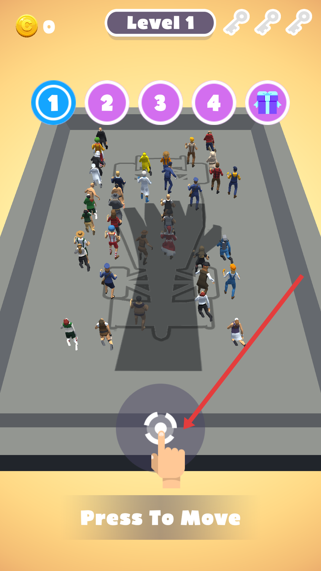 3、持續(xù)推動(dòng)人群,直到手掌將人群推動(dòng)到指定區(qū)域,完成關(guān)卡的核心目標(biāo)。