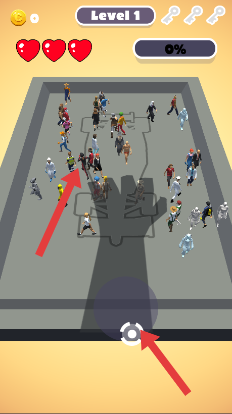 2、通過(guò)操作控制按鈕,移動(dòng)手掌來(lái)推動(dòng)人群,使人群向目標(biāo)方向聚集。