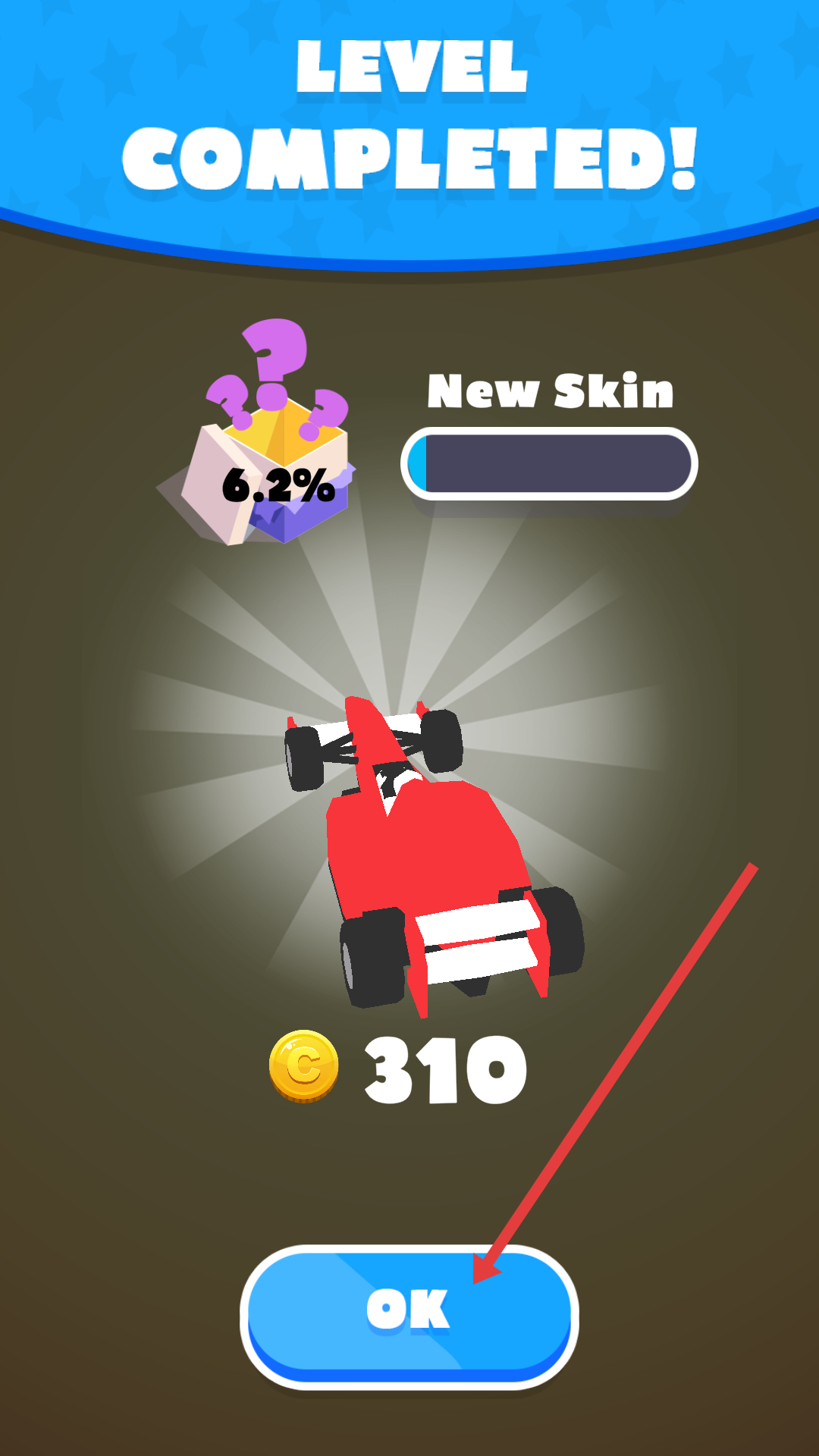 4、當(dāng)關(guān)卡完成后,點(diǎn)擊【OK】按鈕,領(lǐng)取獎(jiǎng)勵(lì)并進(jìn)入下一個(gè)關(guān)卡。